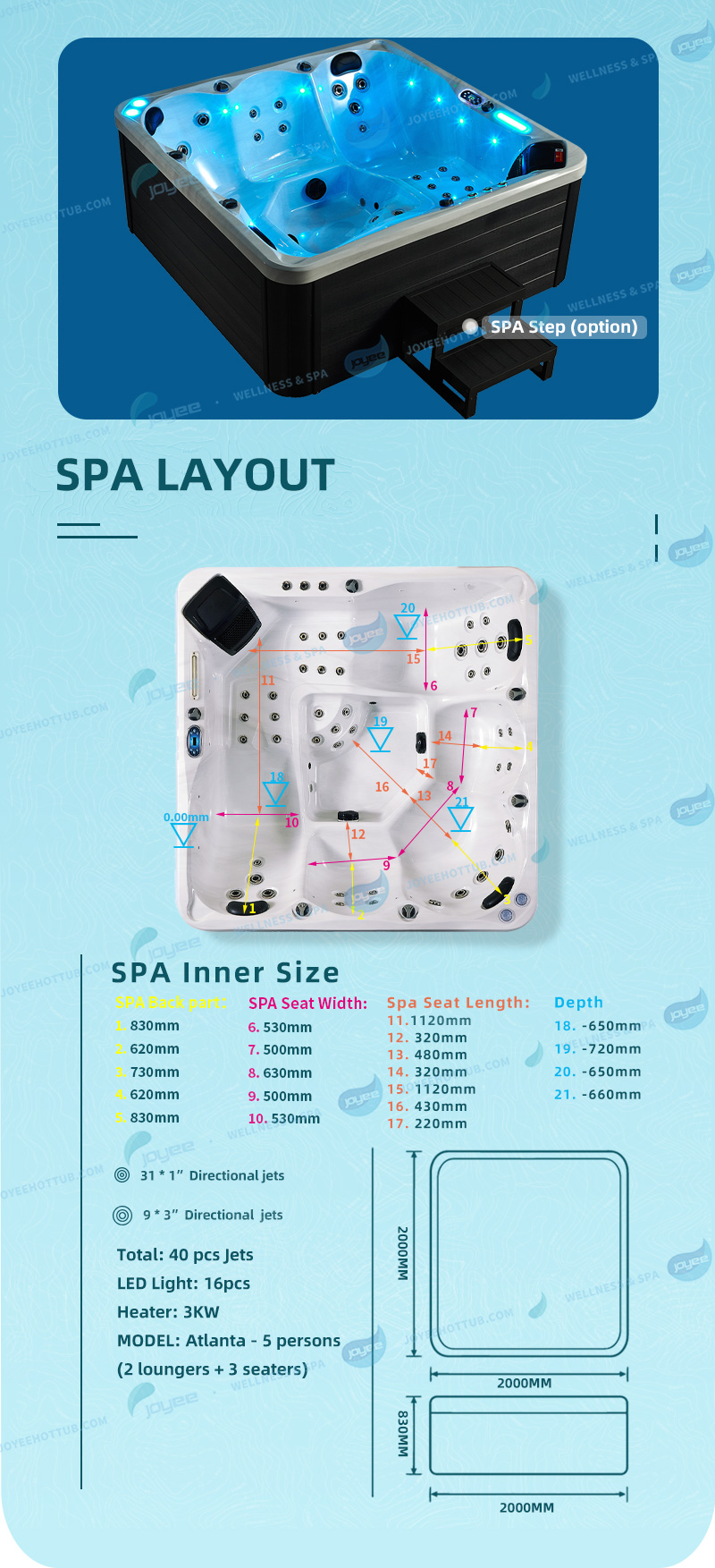 5 mensen buiten bubbelbad | Fabrikant Hydro Massage Whirlpool Spa - Joyee