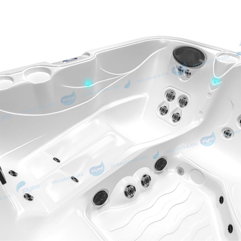 Het bad omvat krachtige jet -systemen die strategisch worden geplaatst voor therapeutische massages, geïntegreerde LED -verlichting voor ambiance en een digitaal bedieningspaneel voor het aanpassen van temperatuur en instellingen.